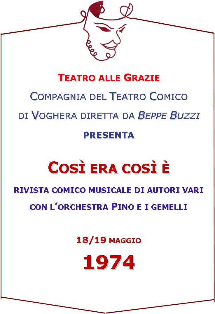 rivista in 2 tempi comici musicali con sfilata di maschere.