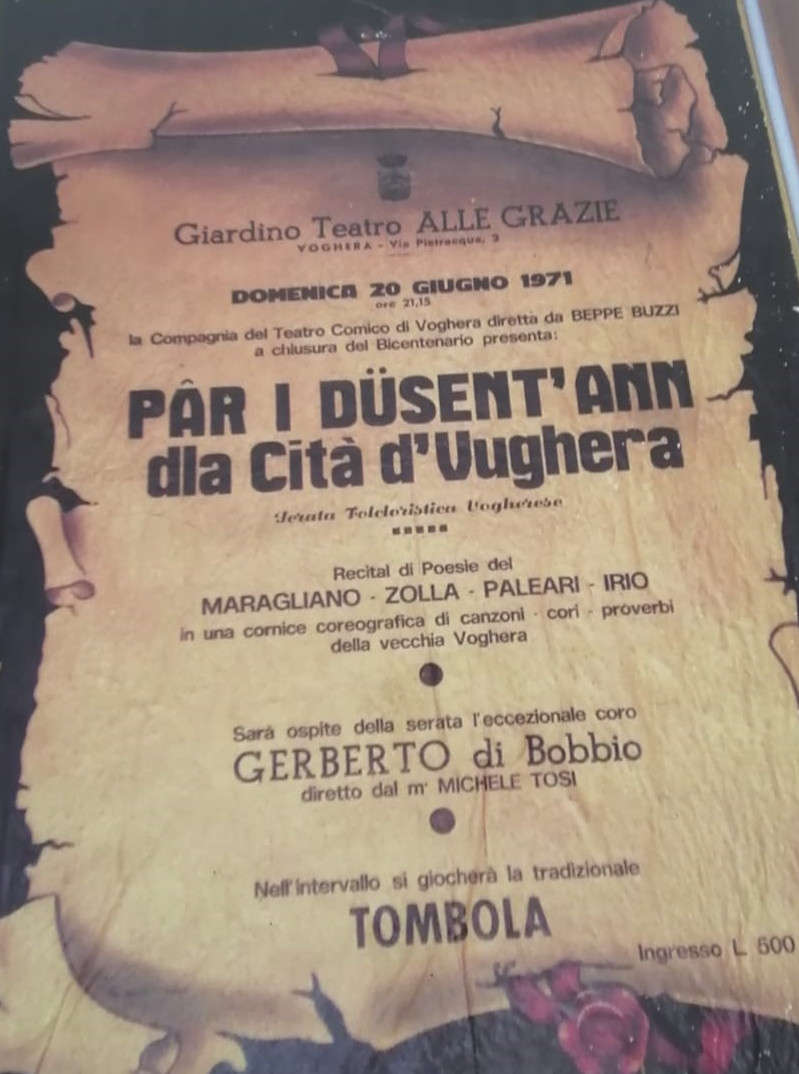 La vera storia artistica di Beppe Buzzi e Peppino Malacalza comincia nel 1942 all’inizio della seconda guerra mondiale, proprio come recita la poesia di Malacalza: “Quând i sèn mis insèmâ, int’âl quârantadü, â gh’è scupià la guèrâ e son rivà lur dü”. La poesia si riferisce sì, a Buzzi e Malacalza ma indirettamente ai due personaggi nati negli anni ‘70 con la rivista “Tütt al mond l’è Vughera” e precisamente Pipei Cristeri e Giuan Cianela... Leggi tutto.